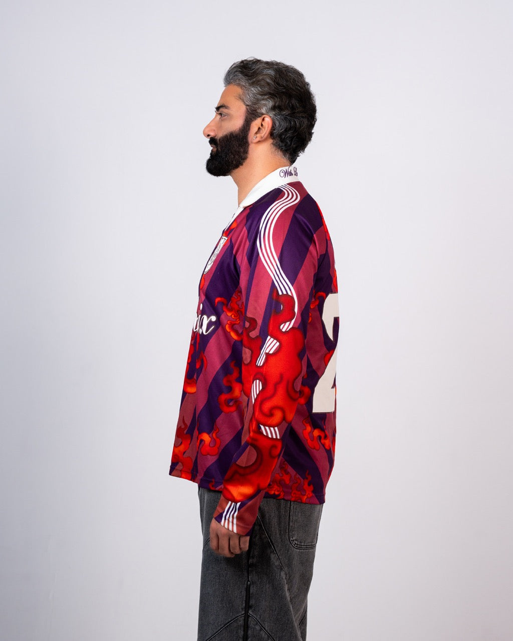 Inspired by the unstoppable spirit of a warrior, the Son Goku Football Jersey channels energy into motion. A blazing sunburst palette of oranges and reds radiates across the jersey in layered flame graphics, capturing the intensity of transformation and power. Designed with SIX5SIX’s lace-up football silhouette and inspired by Aditya Bhalla's personal style and tattoos, the jersey blends anime nostalgia with contemporary street-sport aesthetics.
